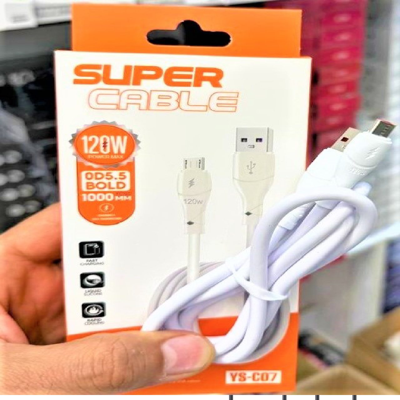 کابل ضخیم شارژر اندروید 120wمدل ys-c07 super kable