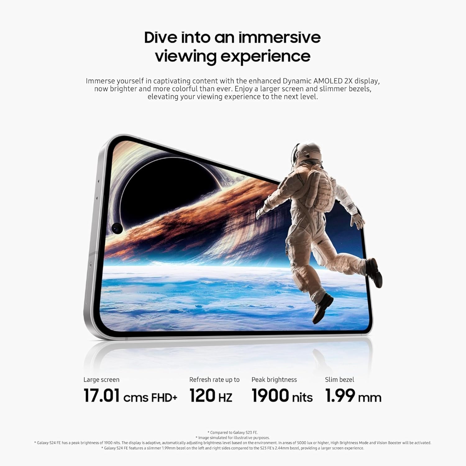 - نوع Dynamic AMOLED 2X, 120Hz, دارای فناوری HDR10 پلاس+, 1900 nits (peak)