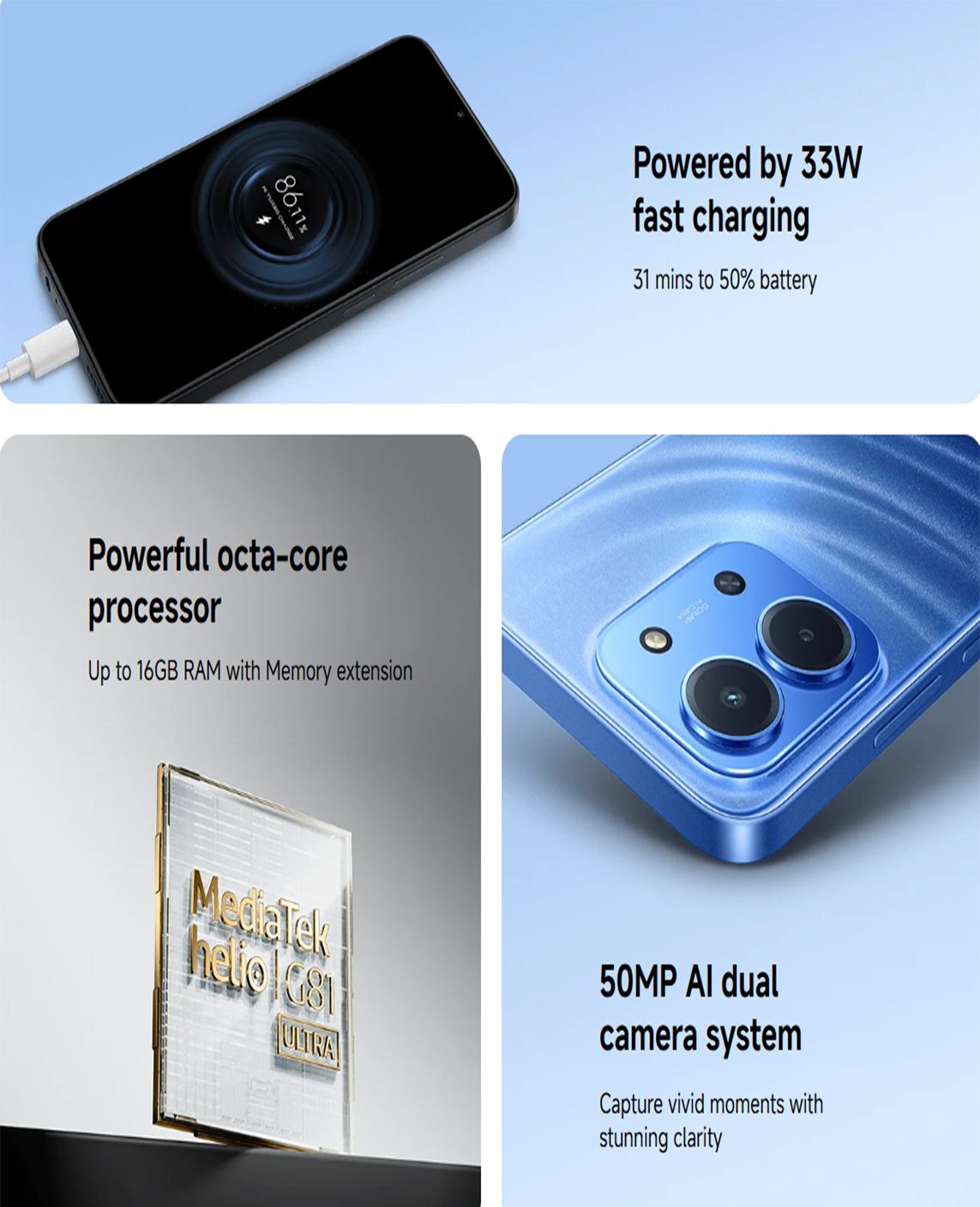 - ChipsetMediatek هلیو G81 Ultra (12 nm)