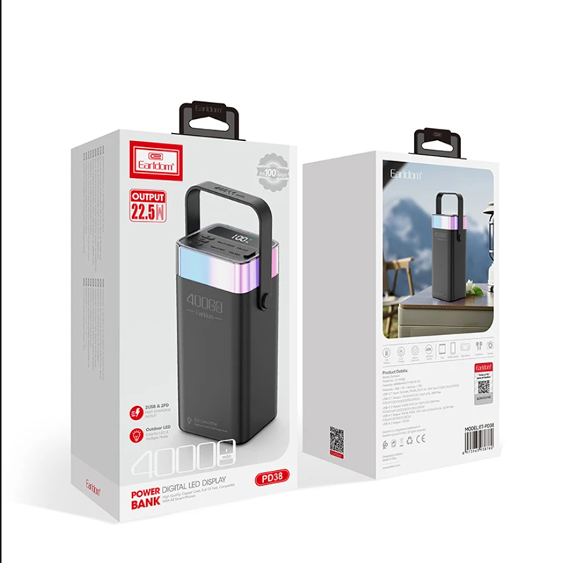 پاوربانک ارلدام مدل ET-PD38 ظرفیت 40000 میلی آمپر